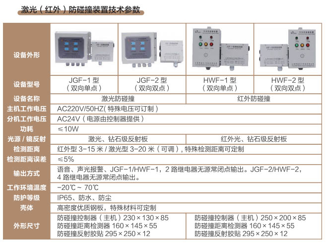 激光(紅外)防碰撞裝置技術參數(shù) 瀏覽:1258
